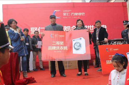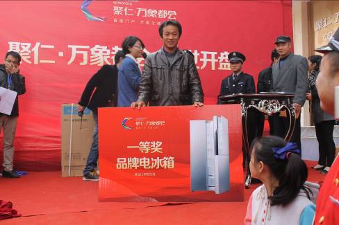 值得一提的是,此次聚仁·萬象都會開盤起價6600元/平方米,在樓價節節攀升的市場背景下,到場客戶無不為實惠的價格感到心動。同時,為最大回饋客戶,開盤當天還設置了多重組合優惠好禮,現場憑VIP卡免費抽取品牌電冰箱、洗衣機、微波爐等,引發現場一陣陣喝彩。