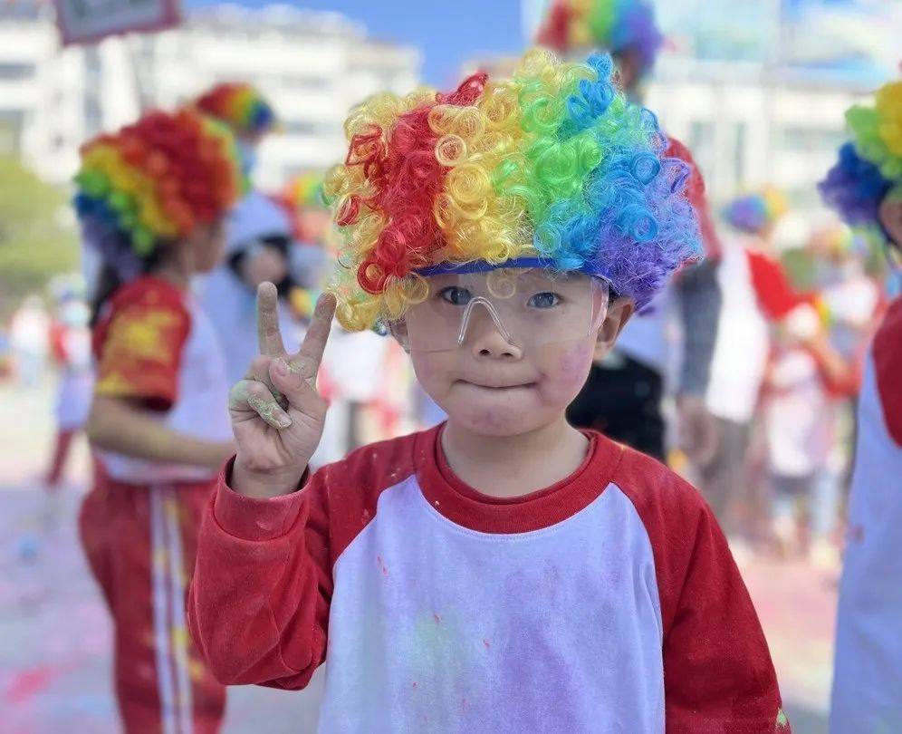 超燃彩虹跑過(guò)后,迎來(lái)集體彩虹大狂歡,孩子們與小伙伴們一同揮灑繽紛彩粉,共同感受“五彩”世界。