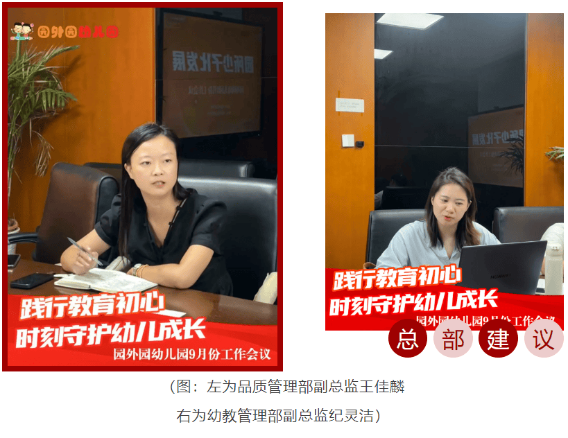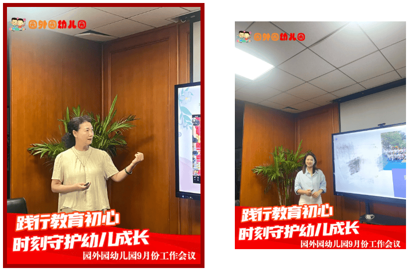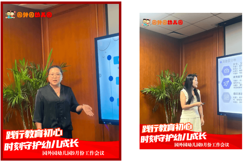 其次,各園長就如何提升教學(xué)水準(zhǔn)、如何更好踐行園外園“三育·四愛”課程等議題展開討論,同時幼教管理部副總監(jiān)紀(jì)靈潔、品質(zhì)管理部副總監(jiān)王佳麟就各園所存在問題提出建議。