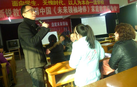 1月17日上午,南昌現(xiàn)代外國語學(xué)校(迎賓校區(qū))在圖書館組織開展了一場別開生面的家庭素質(zhì)教育“報告會”。學(xué)校特別邀請中國第一本青少年成功學(xué)和父母成功學(xué)《改變就在瞬間》的作者傅中國到校,現(xiàn)場向家長們演示了如何幫助孩子找回學(xué)習(xí)樂趣及動力,如何激發(fā)孩子的學(xué)習(xí)潛能創(chuàng)造學(xué)習(xí)奇跡,向家長演示如何把握教子成功成才的關(guān)鍵要素,如何有效激勵孩子改變自己。
