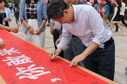 胡樂平等領(lǐng)導(dǎo)在創(chuàng)業(yè)文化節(jié)簽名活動中簽名