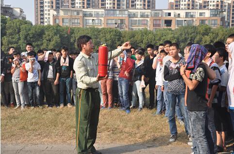 一陣急促的警報(bào)聲拉開了“師生安全疏散演練”活動(dòng)的帷幕,聽到警報(bào)聲,各位老師立即到達(dá)指定崗位,指導(dǎo)學(xué)生快速疏散,各班班主任帶領(lǐng)學(xué)生彎著腰、貓著步,捂住口鼻,沿著學(xué)校指定樓梯口快速前進(jìn),有序撤離到學(xué)校操場的安全地帶,隨即清點(diǎn)人數(shù),并層層向上匯報(bào)校領(lǐng)導(dǎo)。全校師生全部安全疏散完畢后,學(xué)校還邀請了工商學(xué)院保衛(wèi)處處長周圣華對全體師生從如何報(bào)火警、火災(zāi)的預(yù)防、火場自救及逃生方法等消防安全基本常識(shí)進(jìn)行了講解。同時(shí),周圣華還現(xiàn)場演示了滅火器的操作程序,教導(dǎo)同學(xué)們?nèi)绾握_使用滅火器,并指導(dǎo)同學(xué)們現(xiàn)學(xué)現(xiàn)用,現(xiàn)場使用滅火器撲滅火源。