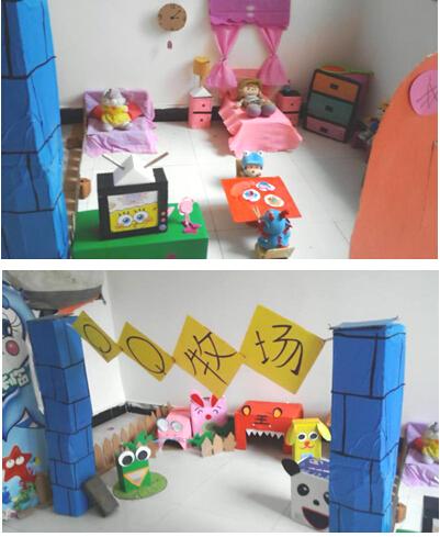 活動中,老師們帶著欣賞與學習的心態走進每個班級,認真聆聽各班老師對環境創設與區域布置的講解,從環境板塊創設的意圖、材料投放的層次性及幼兒興趣點等進行了簡要的介紹。老師們注意活動區域與教育目標吻合、符合幼兒操作特點、關注了幼兒參與的興趣、充分考慮廢舊物品等教育資源的整合利用;區域布置在豐富幼兒的主題活動內容,讓家長、幼兒與區域角充分的對話,使教學活動內容在區域角上得到充分的反饋。在幼兒與教師共同參與布置的整個過程中,兩園都結合主題教育活動創設了具有幼兒園本土特色的環境布置和區域設置。幼兒園環境創設與區域布置,不僅是課程內容、教學活動的反映,更是幼兒學習過程和結果的體現,充分體現了環境育人,環境塑人的理念。