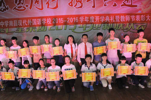 9月10日上午,南昌現(xiàn)代外國語學校(迎賓校區(qū))2015年開學典禮暨教師節(jié)表彰大會在學校五樓會議廳隆重舉行。校長劉雁華,初中部校長鄧華,小學部校長傅紹玫等校領導及各班班主任和3000多名學生參加典禮。