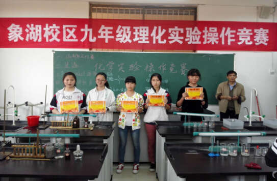 此次活動由初三年級組長負責,吳利民老師主持,在班級競賽的基礎上,各班選派5名學生參賽。為確保本次實驗操作競賽規范、順利、安全、公正、客觀地進行,學校制訂了活動方案。學校領導對各項工作做到了早安排早準備早行動,為讓學生熟悉和規范實驗操作步驟,提升動手操作能力,理化教師除在正常的教學中加強實驗操作訓練外,還堅持在課余加班加點指導學生操作,做到讓每位學生都能熟悉理化課本中的實驗內容,操作步驟,豐富學生的實戰經驗。 比賽活動中,工作安全有序地進行,工作人員各司其職,按照操作程序規范做好工作。考場上考生根據抽簽項目,認真細心地進行操作實驗。測試員履行監考職責,仔細觀察每一位考生的每一個實驗操作步驟,并當場給考生評定成績。整個考查過程中,考風考紀嚴格規范,實驗操作成績良好,達到以賽促教、以賽促學的目的。張馨月等5名學生榮獲物理一等獎;繆欣等5名學生榮獲化學一等獎。