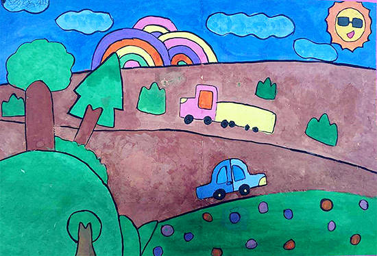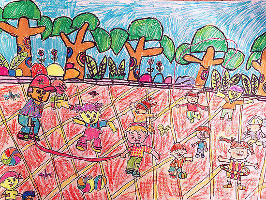 比賽現場氣氛熱烈,孩子們熱情高漲。孩子們經過認真的構思后,紛紛拿起畫筆,仔細的描繪與涂彩。一個多小時后,一幅幅充滿童趣、充滿活力的畫誕生了。孩子們的繪畫作品內容豐富,形式多樣。有描繪學校的,有表現體育活動的,還有反映戶外郊游的……作品構思巧妙、色彩鮮艷。