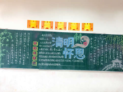 4月7日,在各位班主任的認真安排和精心組織下,全體師生以班為單位,通過不同途徑搜集板報素材,設計板面,利用課余時間編寫板報,自己設計排版、繪圖和抄寫,對清明節的由來、風俗習慣、傳統習俗、緬懷先烈、等作了宣傳。板報作品創意不斷,版式設計新穎,富有時代性、知識性、趣味性,達到了較好的教育宣傳效果。同學們通過搜集有關清明節的節日習俗、詩詞歌畫等方面的知識,對中國的傳統文化有了進一步的了解。黑板報比賽在評選出一、二、三等獎的基礎上,還為組織到位的年級組頒發了優秀組織獎。