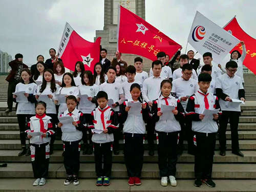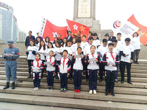 4月11日上午南昌現(xiàn)代外國(guó)語(yǔ)學(xué)校(迎賓校區(qū))部分中小學(xué)生在校領(lǐng)導(dǎo)的帶領(lǐng)下,乘車前往南昌八一起義紀(jì)念塔下參加了“為紀(jì)念建軍90周年,尋訪八一征程路中國(guó)夢(mèng)鐵軍情”活動(dòng)。
