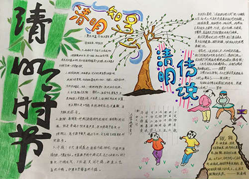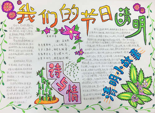 “我們的節日·清明”節日小報創作作品要求以清明節所蘊含的傳統文化內涵為主題,內容精煉、圖文并茂,色彩搭配合理、作品有創意、報頭新穎、貼切。小學低年級以繪畫展現為主;小學高年級以文字采集為主;中學生以表現自身感悟和創作技巧為主。