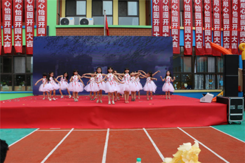 剪彩儀式后,形式各異、精彩紛呈的文藝表演開始了,迪斯尼金沙園、芳草園、朝陽園、迎賓園、象湖園五所姐妹園所的小朋友和老師們,為到場的來賓們表演了《紅紅火火鬧心怡》《涼涼》《快樂體操》《傣家小妹走過來》《箱子的夢》《戰士》《椅子操》《青花瓷》《書簡》《好好學習》一系列經常節目,這些表演既有動感十足、也有民族風情,從側面向在場的各位展示了幼兒園老師們及孩子們的多才多藝。
