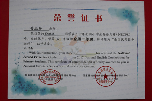 本次競賽,南昌現代外國語學校(象湖校區)經過初賽選拔,共170多名學生進入決賽。從初賽到決賽短短一個月的時間,我校20名英語老師每天利用放學后及中午休息時間,采取集中、分散、個別輔導的形式,由英語教研組長負責組織有針對性地進行輔導,老師之間經常在一起相互交流輔導方法,商討難題,并做到每天跟家長溝通與交流,讓家長配合督促孩子在家完成復習任務。功夫不負有心人,在決賽中,我們學校有九名學生分別獲得了國家級二、三等獎;有70名學生獲得市級一等獎;90多名學生獲得市級二等獎;7名教師獲得“全國優秀指導教師”光榮稱號;學校獲得了第十屆全國小學生英語競賽優秀組織獎。本次比賽獲得優異成績,是對參賽學生刻苦學習的肯定,是輔導老師辛勤指導的回報。