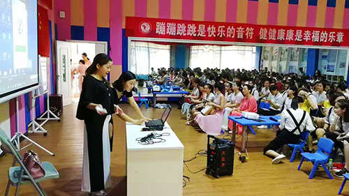 李琳老師的演講剛剛開始,現場已座無虛席,大家認真聽講,積極做好筆記,都想要在僅有的時間多多消化內容,然后在歸程中慢慢回味。李琳老師向參會老師分享了自己從事幼教工作這23年中,總結出的園所經驗,并運用大量實物表格、案例為大家介紹在幼教活動中的溝通技巧,以及如何進行自我情緒管理。并且,通過情景劇、現場互動等生動形象的方式,讓大家在培訓中有更切身的感觸。