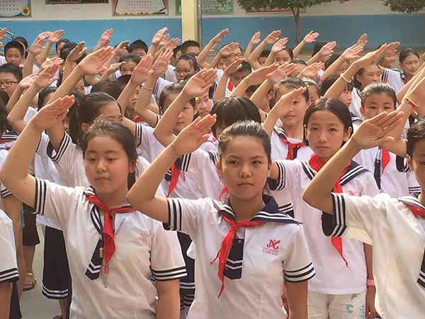 2017年9月27日下午,南昌現代外國語象湖學校一年級的同學們在操場隆重舉行了入隊儀式。同學們個個小臉上洋溢著開心燦爛的笑容,他們在老師的帶領下,早早地來到操場,等待著他們人生中第一次意義重大的、激動人心的時刻——加入光榮的少先隊組織。