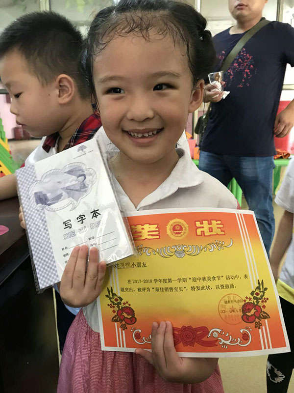 本次活動還特別準備了十名“最佳銷售寶貝”獎,通過賣食物的速度來評出前十名。還有二十名“小小美食家庭”獎,“小小美食家庭”是從每個班選出五組精美食物頒發該獎項。若干名 “積極小寶貝”獎則是評選積極參與的小朋友們獲得該榮譽。
