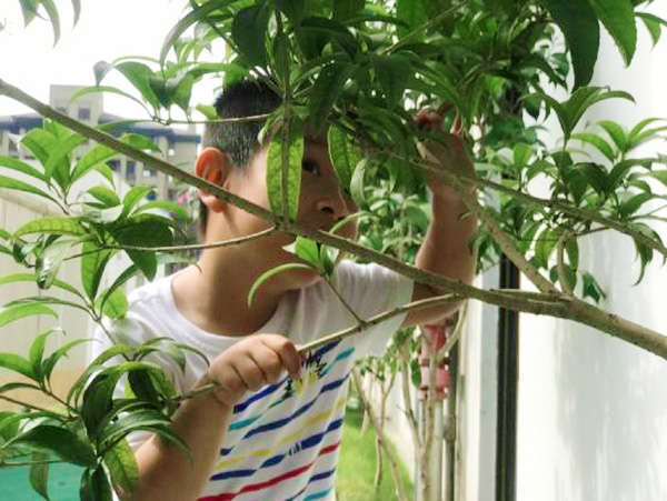大自然就是孩子們最好的老師,孩子是屬于大自然的,孩子們在玩耍中感悟自然。桂花樹清香淡雅,尤其是淡黃或金黃的小花,簇擁在各自的枝頭,可愛至極,花瓣在風中搖擺著頭送出馨香,顯得親切而溫暖。孩子們興奮地觀察著桂花的形狀,聞著桂花的香氣,在這個時節上了一堂有趣的自然課。