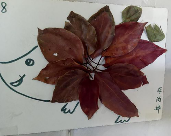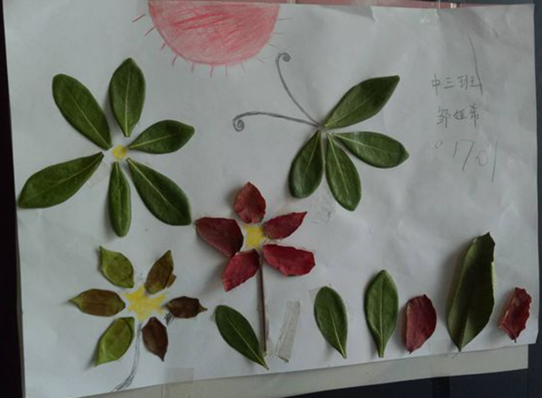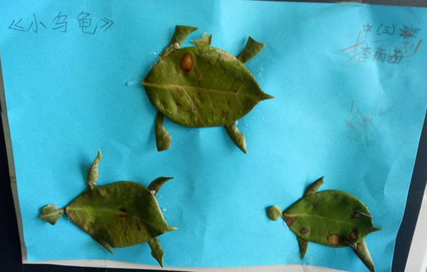 活動(dòng)中,孩子們?cè)诩议L(zhǎng)和老師的幫助下,充分發(fā)揮想象力,一片片不同的樹葉在孩子們的手里,做成了一幅幅精美的樹葉粘貼作品。有的用樹葉貼成了活潑的小刺猬;有的做成了可愛的小烏龜;還有的做成了美麗的孔雀......一幅幅構(gòu)思奇特、色彩鮮艷的藝術(shù)作品充分展示了孩子們豐富的想象力和創(chuàng)造力。