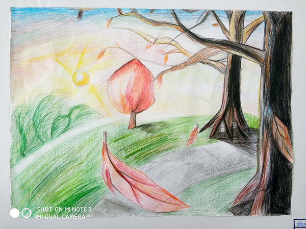 本次評比指定以“秋天”為主題,老師們可以充分發揮自己的想象,畫出自己心目中最美的秋天。比賽中教師們亮出自己的看家本領,大部分先用鉛筆打底,然后用記號筆勾勒,最后進行上色。