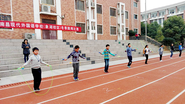 為更好的開展冬季體育運動,增強學生的體質,培養學生團結、拼搏的精神,12月27日下午,南昌現代外國語學校(象湖校區)小學部舉行了一場“跳出健康、跳出快樂”為主題的冬季跳繩比賽。