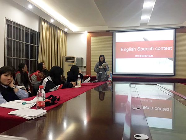 此次比賽面向高一、高二全體學生,共有42名學生報名參加比賽。比賽由高二(5)班的劉興童和高二(6)班的王雅芝同學共同主持,施云霞老師、黃姍老師、黃歆老師、王莉芬老師共同擔任評委,于竹影老師、黃文秀老師共同負責比賽策劃與組織。在校領導的熱烈支持、高中英語組的共同努力以及全體師生的積極配合下,演講比賽順利進行。