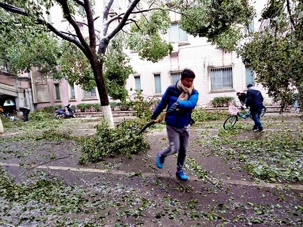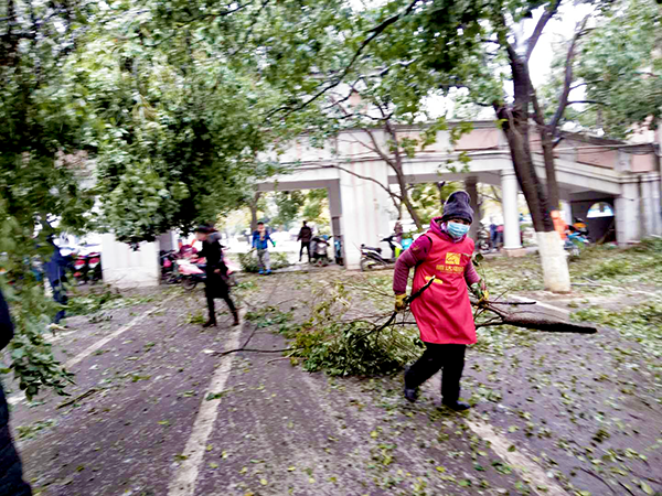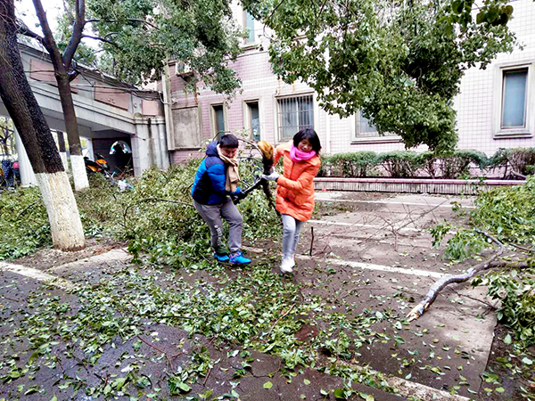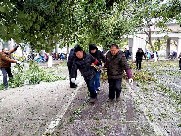寒風凜冽,但絲毫沒有影響大家勞動的熱情。大家不懼寒冷、爭先恐后、相互配合,一點點地將凍雪和斷掉的樹枝清掃到校園的指定地點。熱火朝天的勞動畫面和忙碌的身影成為校園里一道靚麗的風景線。