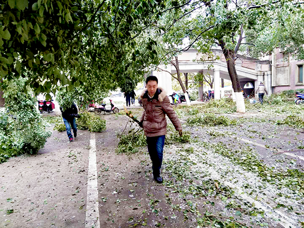 ■一些學生看到老師們在辛苦的勞動,他們也積極的參與進來,有的幫掃落葉,有的幫抬樹枝。