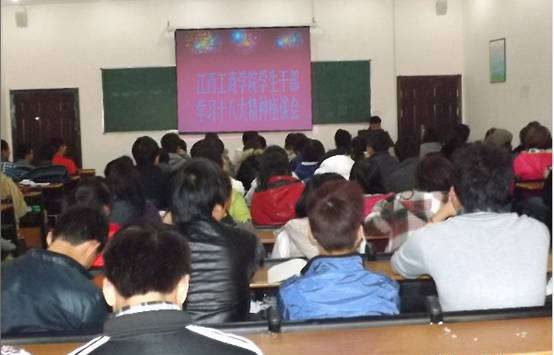11月19日下午,在學院多媒體會議室召開了“學習黨的十八大精神學生干部座談會”。首先院團委王眾老師對黨的十八大精神進行了宣講,并就學生會干部深入學習貫徹十八大精神作出了部署,對學習中需要把握的重點問題提出了明確要求。他指出,要以學生干部為切入點從而帶動全院學生深入學習落實黨的十八大精神。應做好以下幾點工作: