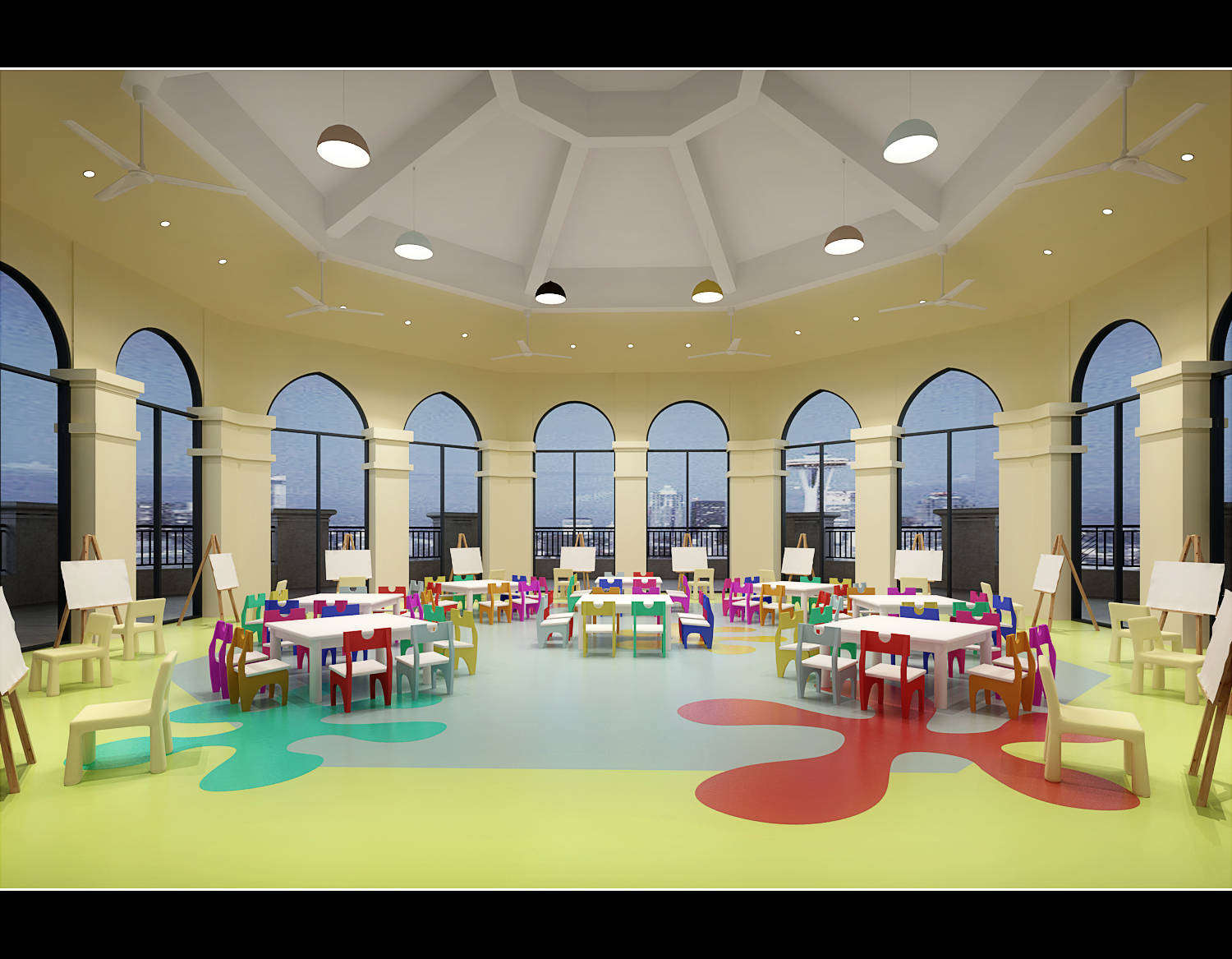 城堡式的建筑為孩子開啟童話般的幼兒園生活。園內設有大操場、室內大廳、區角活動區、美術館、繪本室、游泳池、手工室、音樂室、鋼琴房等,配有功能齊全的現代化設施。在室內空間的設計規劃上,園所將地面與整個樓梯環境空間融為一體,給孩子們一個美觀、整潔、舒適、富有情趣的生活環境。