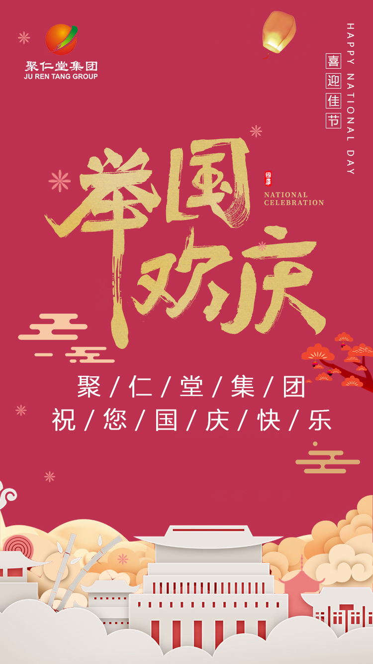 普天同慶賀華誕,神州大地俱歡顏。我們迎來了祖國69歲生日,世界各地的華夏兒女歡騰賀國慶,深深祝福偉大的祖國母親!值此之際,聚仁堂集團向全體員工表示節日祝福:祝大家國慶快樂,闔家歡樂!特別是節日期間堅守在工作崗位的員工,你們辛苦了!感謝你們!因為有你們,聚仁堂會有更好的明天!