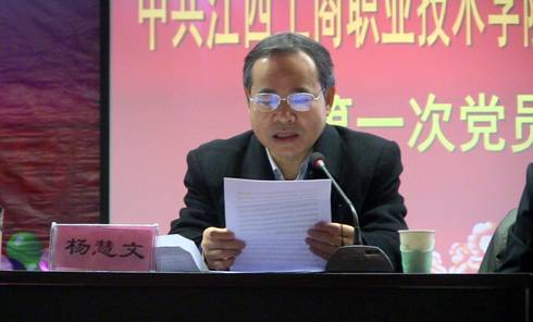 會議開始后,熊慶任宣讀了教育工委《關于成立中共江西工商職業(yè)技術學院委員會的批復》,同意成立中共中共江西工商職業(yè)技術學院委員會。隨后,楊慧文代表省委教育工委、省教育廳社辦黨委對對本次大會的召開表示祝賀,對工商學院近幾年建設和發(fā)展所取得的成績和黨建工作給予了充分肯定。他要求學院以黨委成立為契機,認真貫徹執(zhí)行中央、省委和省教育工委的有關文件以及歷次高校會議精神,不斷加強和改進黨建工作,努力探索民辦高校黨建工作的新路子;要緊密結合形勢開展思想政治教育,提高全體黨員和師生員工綜合素質;要著力維護學校校園和諧穩(wěn)定,牢牢把握黨對高校意識形態(tài)工作的領導權和主動權;要積極做好群團組織的領導工作,努力推進學校各項事業(yè)的發(fā)展,使學校辦出特色,辦出水平。