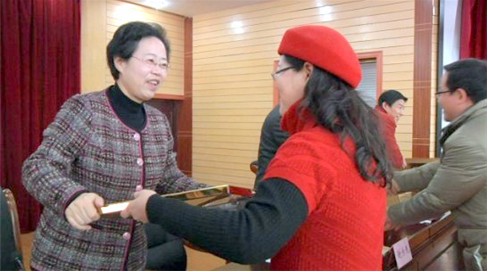 南昌現(xiàn)代外國語學(xué)校董事長劉雁華領(lǐng)獎留念
