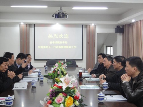 3月6日上午,省教育考試院自學考試處劉海濤處長及市自學考試辦公室相關領導一行四人蒞臨江西工商職業技術學院指導工作。學院領導和相關處室負責人出席座談會,院長李暉主持會議。