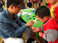 在老師的指導下,孩子們有序地進行身高、體重、血紅蛋白(化驗)、視力等多項檢查。
