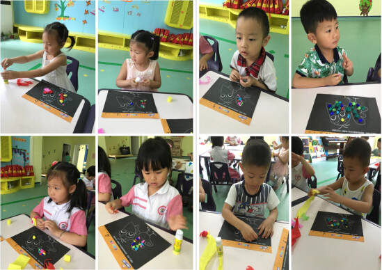 寶貝們用斯帖、揉貼等方式裝飾小烏鴉,小朋友們?cè)谘b飾過程中相互幫助,不爭(zhēng)不搶,秩序井然。都很愿意在活動(dòng)中大膽展示,去實(shí)現(xiàn)小烏鴉要變美的愿望。瞧!孩子們的作品完成了,多自豪多開心呀!