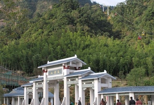 據飯店老板介紹說,有不少人選擇徒步進山,從索道口至三清山的核心景區大約要溯溪而上3公里,此水流湍急的小溪隱沒在一條美麗山谷中,徒步耗兩小時足已。雖然一路也能鳥語花香可閱風景無數,但我們還是選擇從懸空千米的高處舉目四眺這大好河山,比起走在風景中觀景,大家一致認為纜車上的視線會更遼闊更壯觀,當然這樣還可以節省不少體力。纜車緩緩移動著,在翻越一個小山頭后,山谷前所未有的開闊起來,溝壑深不可測,在下方山谷密林中溯溪前行的徒步者變得非常渺小,而我們隨著纜車扶搖直上,四周奇峰異石層層排開,我們就如同了飛翔在萬仞仙峰中的鳥兒。