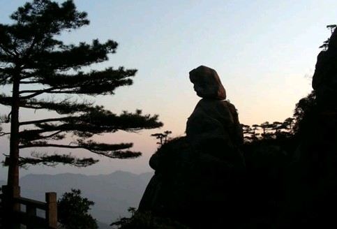 首先映入眼簾的是三清山最著名的司春女神,微微頷首,脈脈凝視著腳下連綿的山脈。游人匆匆,而女神千年端莊。離開了女神山莊,一路上,看著形態各異的山石、蒼松,只覺得秀麗無比,卻說不出個名堂。偶爾碰上旅游團,才能乘機聽導游講解幾句,什么葛鴻煉丹,企鵝獻桃等等,不知道何方高人居然能想出這么多形象而又朗朗上口的名字。