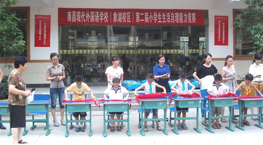 6月26日下午,南昌現代外國語學校(象湖校區)舉辦了第二屆小學生生活自理能力競賽。比賽開始前,各班選出的小選手們個個摩拳擦掌、躍躍欲試,拉拉隊的助威聲也在比賽場上此起彼落,好不熱鬧!