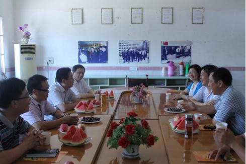 7月24日上午,南昌縣蓮塘八小一行6人在該校校長涂傳懷的帶領下,來到南昌現代外國語學校參觀交流,集團董事長胡樂平、副董事長劉雁華熱情接待了涂傳懷一行。